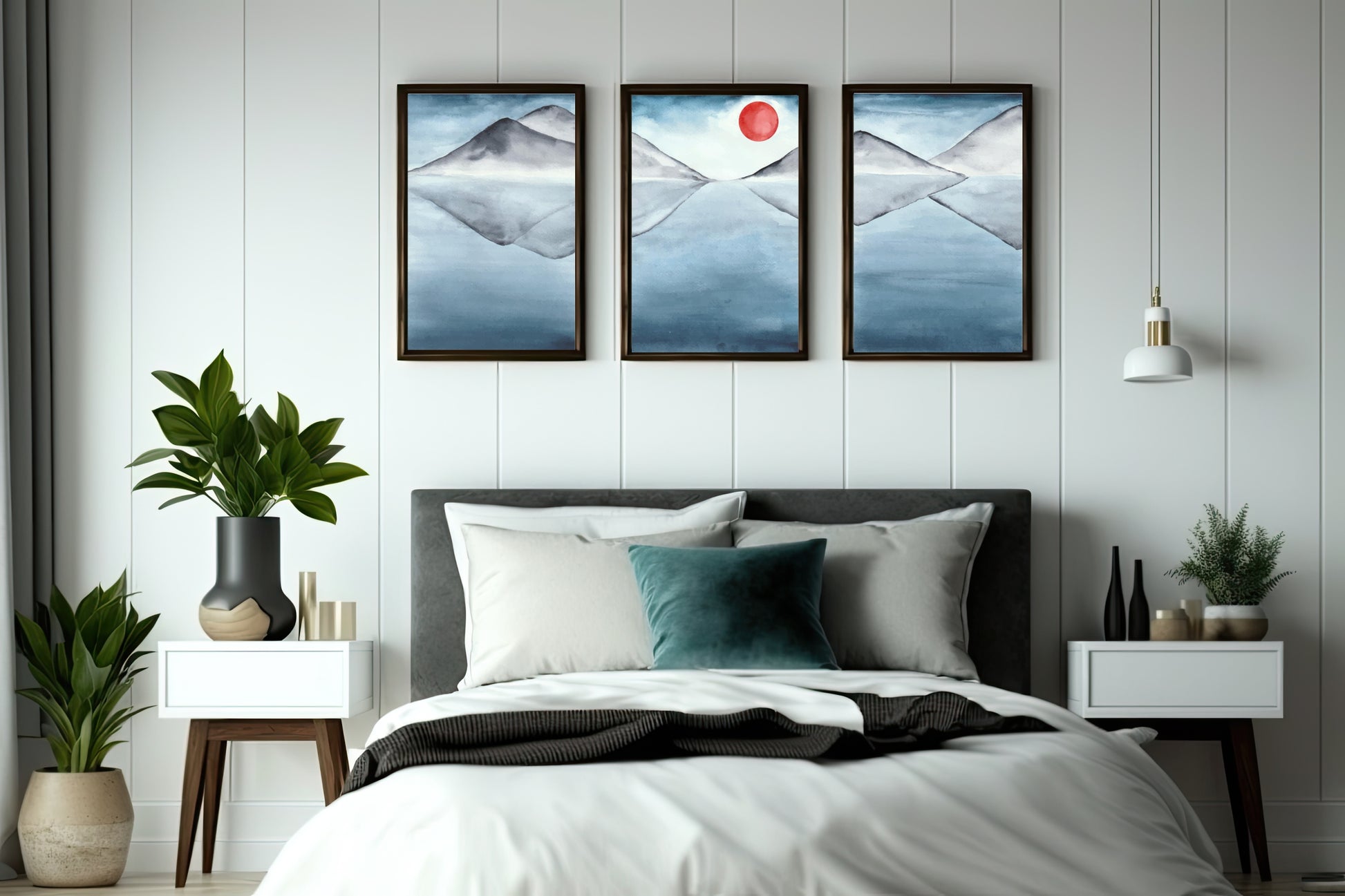 ✔ Design: Minimalist Mountain & Lake Landscape Art Frame Set