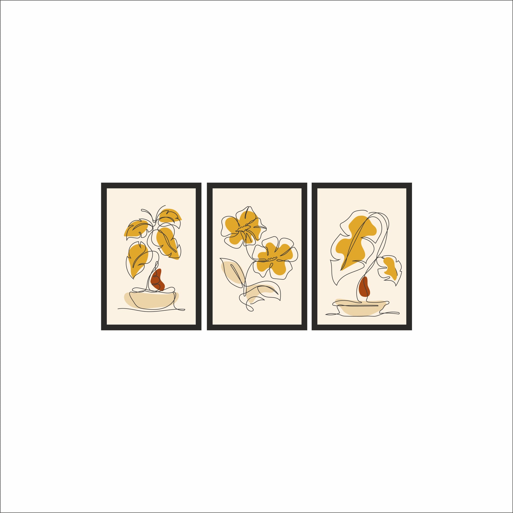 Infuse your home with peace and artistic warmth with the Golden Blossom Harmony Wall Frame Set of 3. Featuring elegant floral line art combined with glowing diyas, this artwork beautifully symbolizes positivity, purity, and light. The minimal golden tones and modern design make it perfect for any living space, prayer room, or meditation corner.