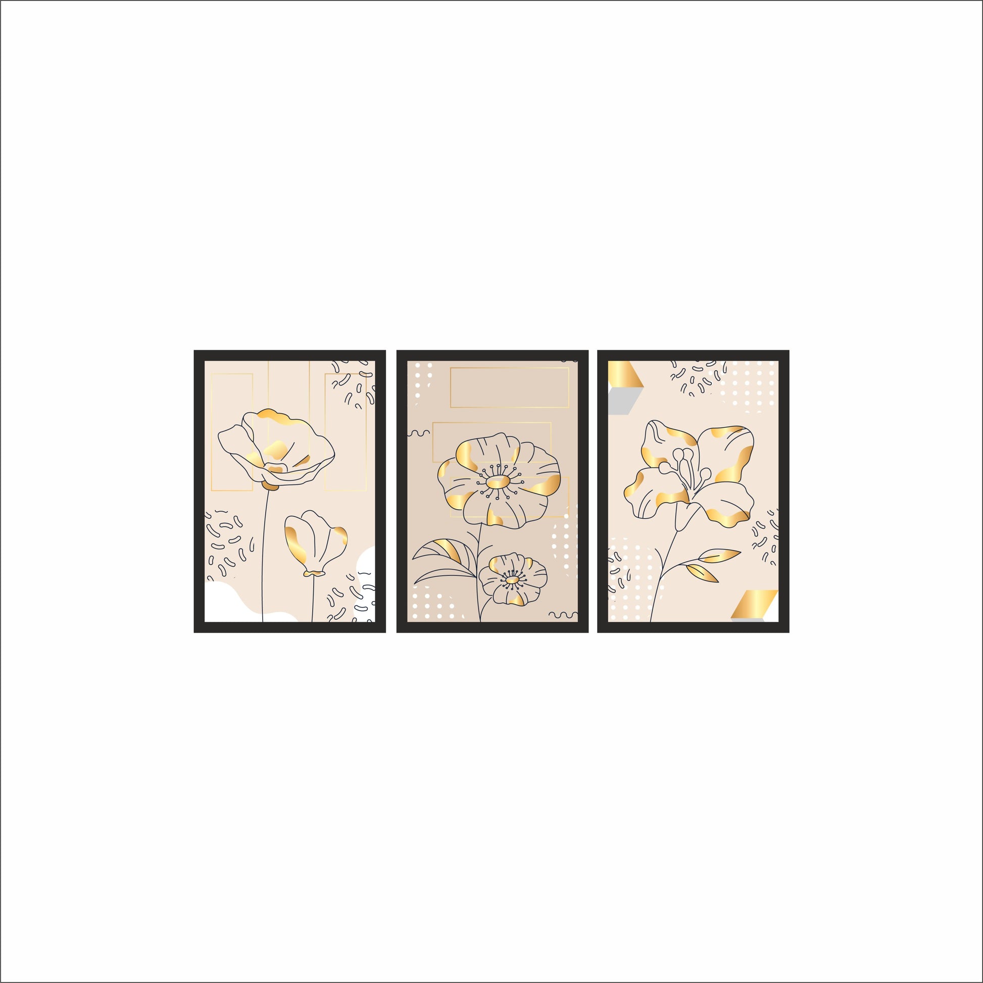 Bring elegance and charm to your interiors with the Golden Bloom Abstract Floral Wall Frame Set of 3. Designed with delicate line art flowers highlighted in luxurious golden tones, this artwork adds a graceful and modern touch to your space. The soft beige background complements any decor, making it perfect for living rooms, bedrooms, and offices.