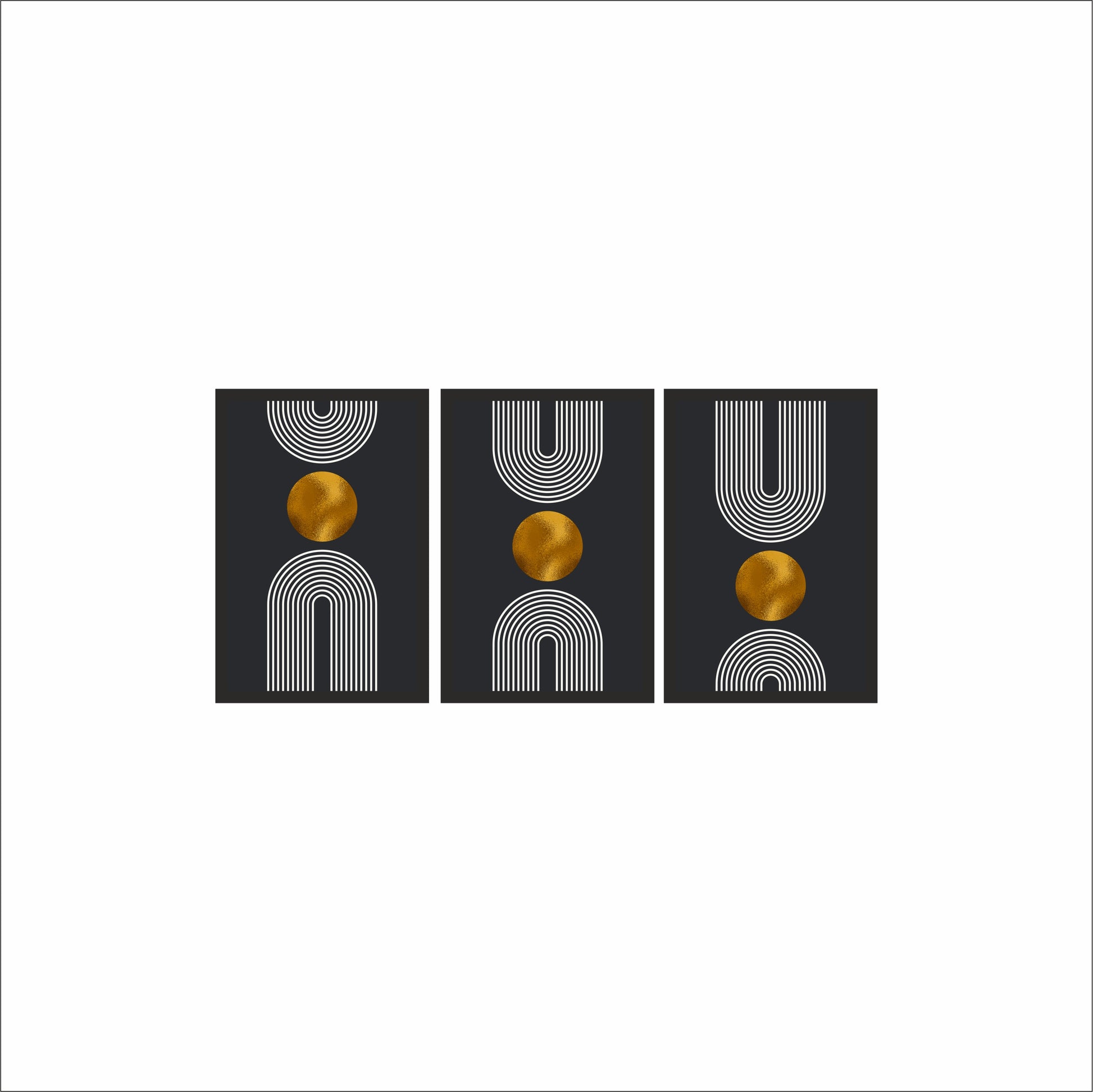Bring sophistication and minimal elegance to your home with the Golden Geometry Wall Frame Set. Featuring sleek white geometric lines and striking golden orbs set against a deep black backdrop, this trio captures the essence of modern luxury and balance. Perfect for those who love clean, contemporary aesthetics.