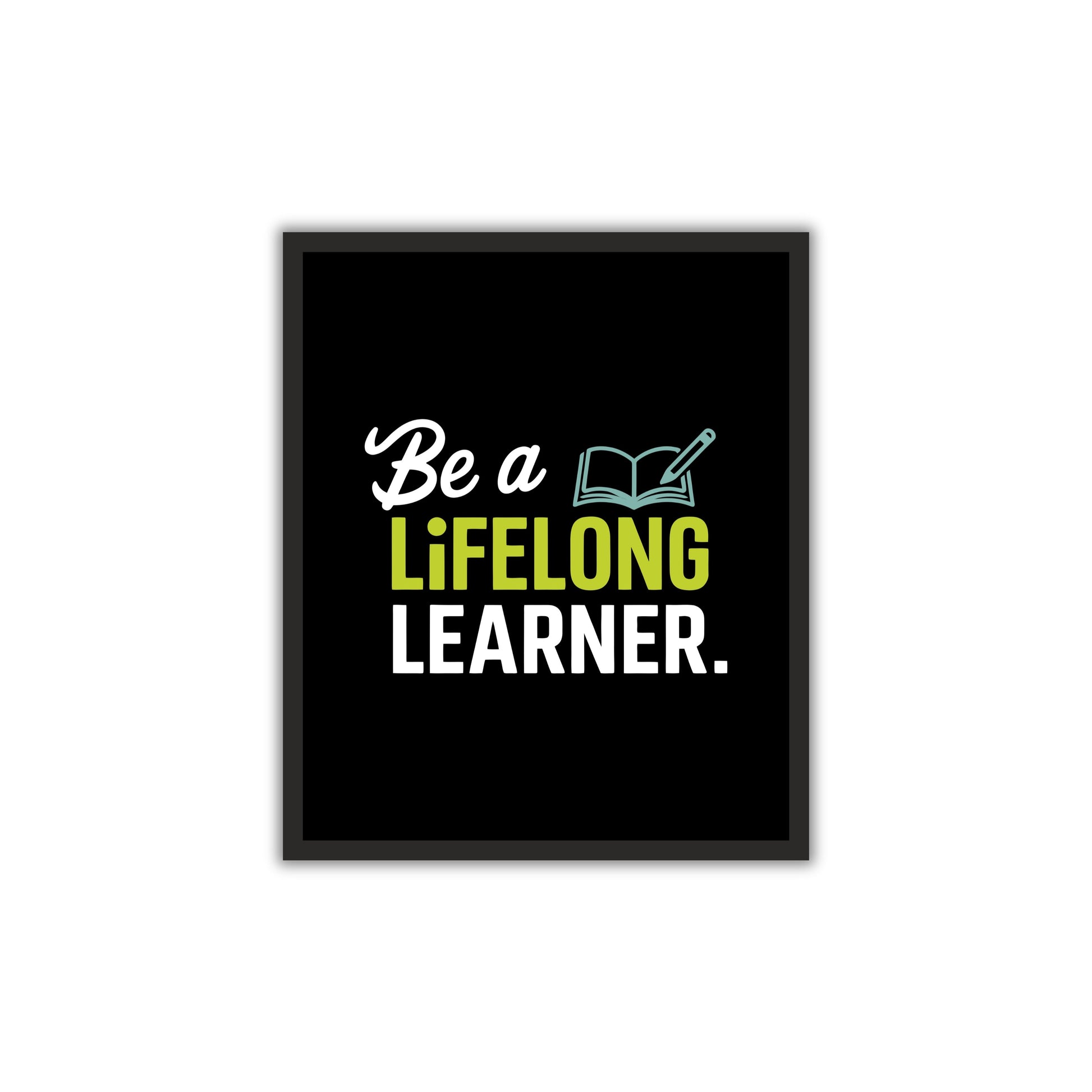 Boost your motivation with this inspiring wall poster that encourages you to always keep learning! Featuring the bold statement "Be a Lifelong Learner" with a stylish book and pen icon, this poster is perfect for students, teachers, professionals, and knowledge seekers.