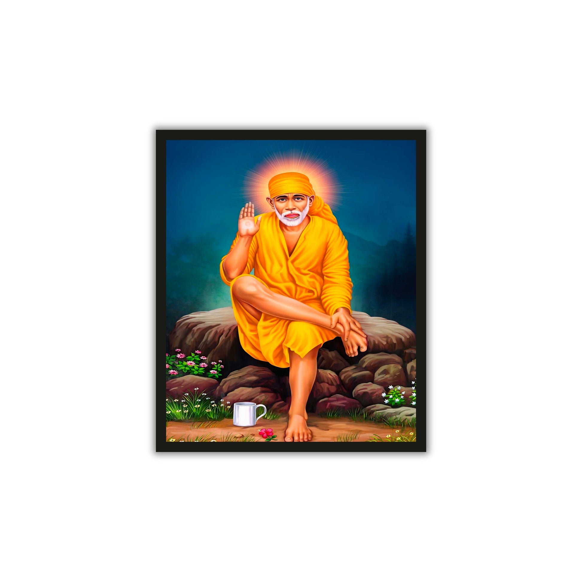 This high-definition portrait, printed with mat lamination and enclosed in a premium black frame, serves as a sacred tribute to his eternal blessings. It is a meaningful addition to any spiritual space, temple, home, or office, radiating positivity, devotion, and divine grace.
